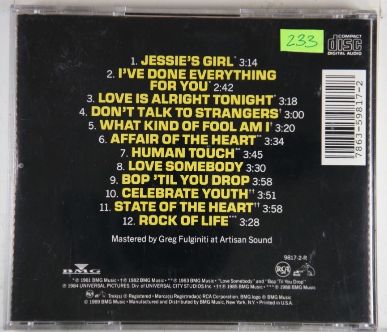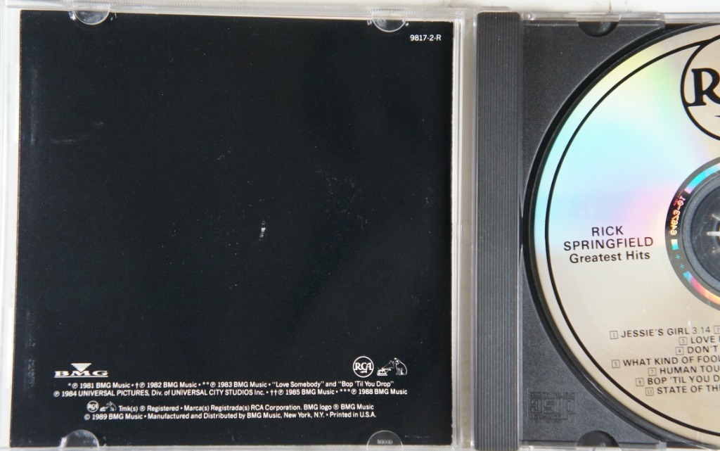 Teraz kilka słów jak oceniam stan zachowania płyt i ich okładek. Generalnie nie odsłuchuje CD w ogóle, jak lustro dysku jest czyste bez dużych rys to powinno grać bez jakichkolwiek ubytków. Jak na lustre widać dużo rysek, zadrapań etc to wtedy słucham takiej płyty czy nie ma zacięć i opisuję na stronie aukcji. Podobnie z poligrafią jest opisywana i fotografowana. Jak poligrafia dostaje ocene bardzo dobrą bez żadnych dotykowych uwag to znaczy że można znaleźć na niej ślady normalnego użytkowania, np odciśnięte plastikowe półokręgi, które ja trzymają by nie wypadła z pudełka. Samo plastikowe pudełko nie wchodzi w skład opisu stanu zachowania albumu.