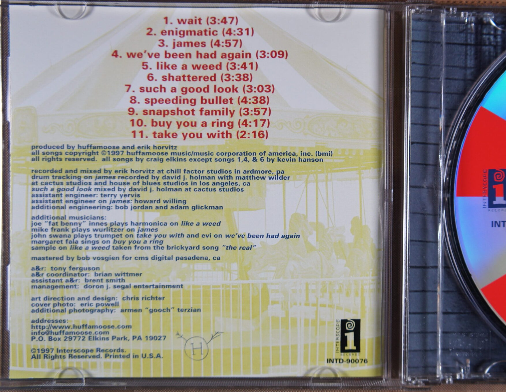 Teraz kilka słów jak oceniam stan zachowania płyt i ich okładek. Generalnie nie odsłuchuje CD w ogóle, jak lustro dysku jest czyste bez dużych rys to powinno grać bez jakichkolwiek ubytków. Jak na lustre widać dużo rysek, zadrapań etc to wtedy słucham takiej płyty czy nie ma zacięć i opisuję na stronie aukcji. Podobnie z poligrafią jest opisywana i fotografowana. Jak poligrafia dostaje ocene bardzo dobrą bez żadnych dotykowych uwag to znaczy że można znaleźć na niej ślady normalnego użytkowania, np odciśnięte plastikowe półokręgi, które ja trzymają by nie wypadła z pudełka. Samo plastikowe pudełko nie wchodzi w skład opisu stanu zachowania albumu.