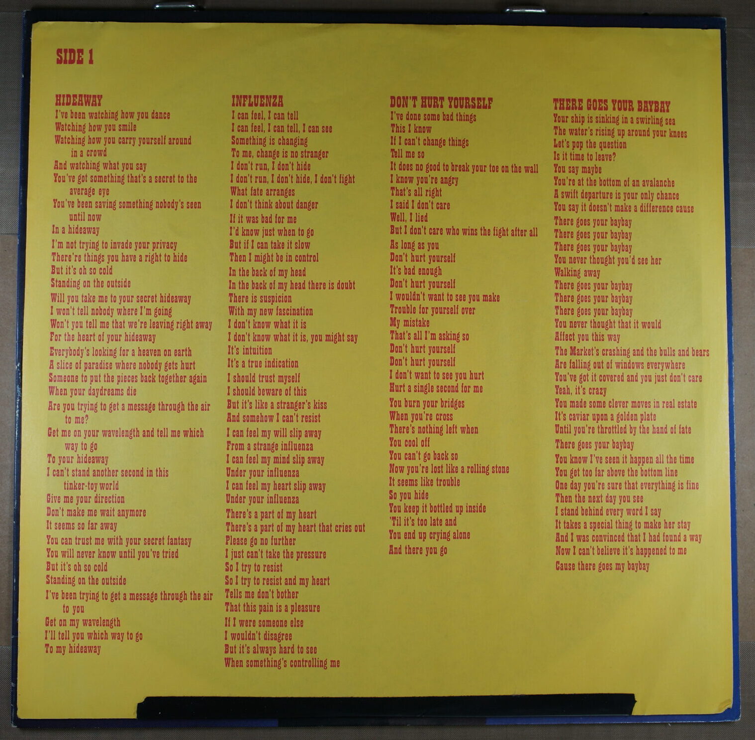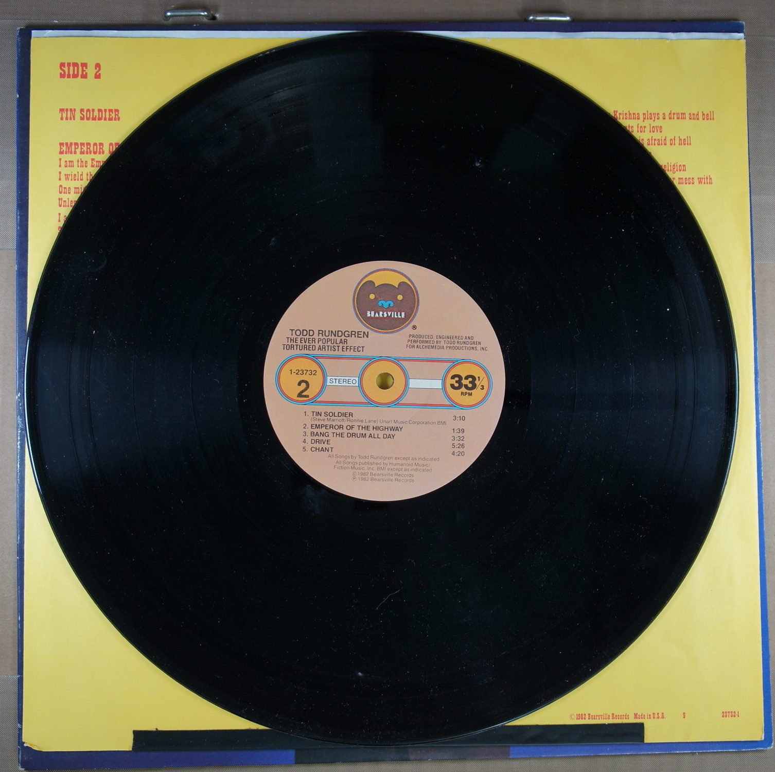– płyta: była wielokrotnie odtwarzana, ale nie odznacza się słyszalnym spadkiem jakości dźwięku, pomimo śladów na powierzchni oraz nieznacznych zarysowań; które mogą być słyszalne drobne trzaski czy pyknięcia.