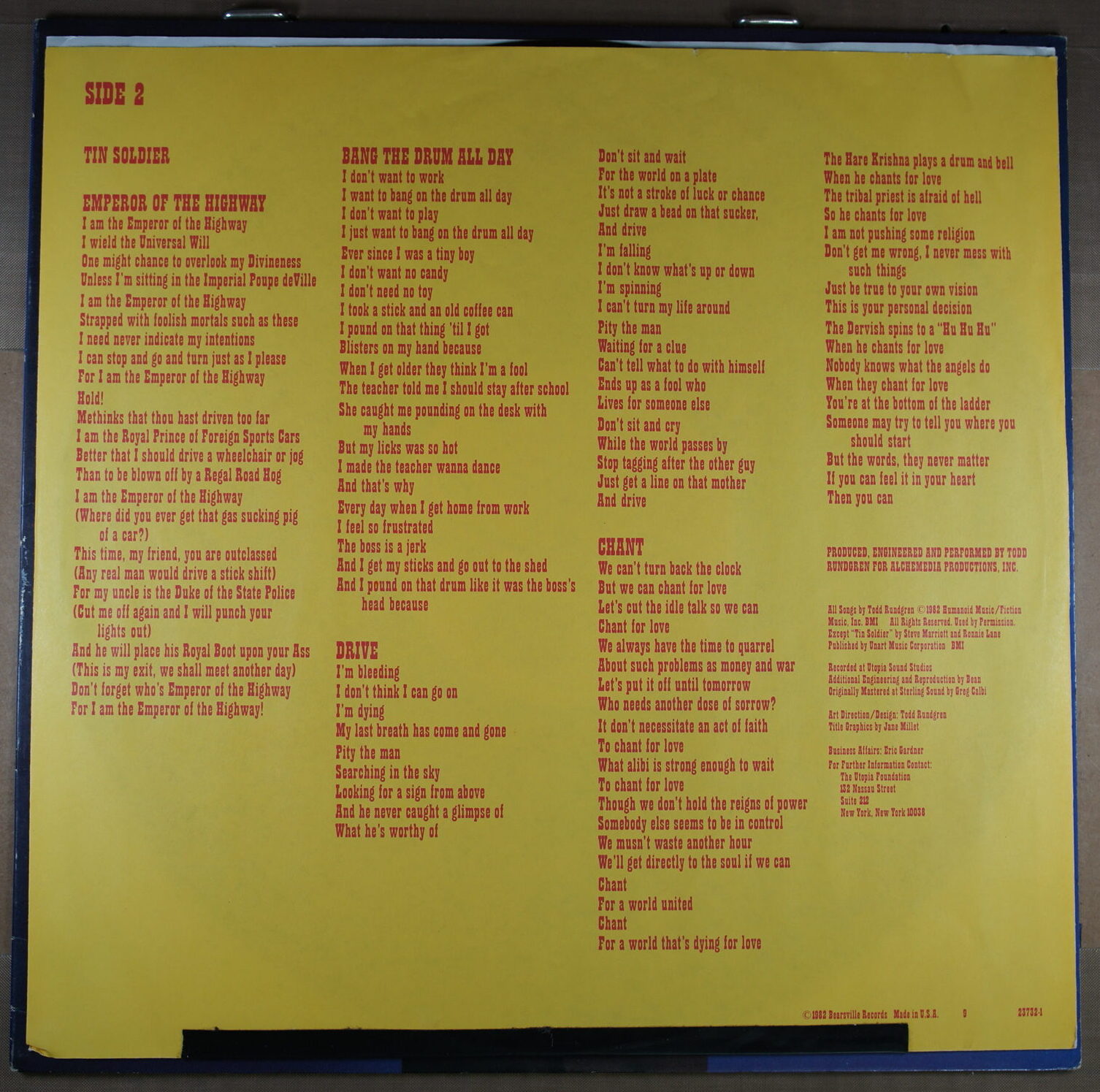 – okładka: okładka oraz dodatkowe elementy (plakat, wkładka z tekstami) mogą odznaczać się niewielkim zużyciem oraz posiadać niewielkie przetarcia/zgięcia.
