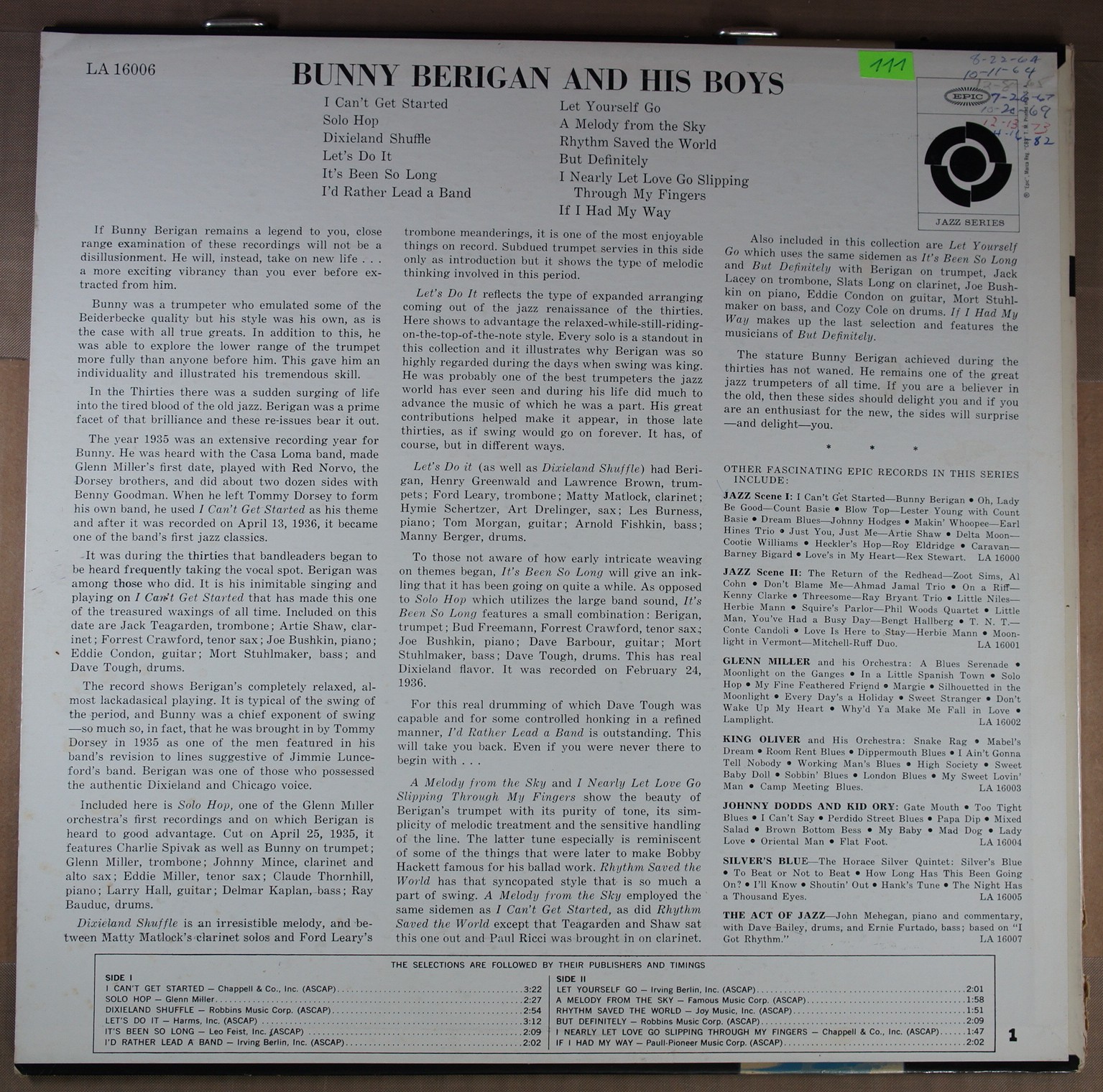 – płyta: nie nadaje się do odtwarzania, egzemplarz kolekcjonerski, wartość jedynie sentymentalna.
