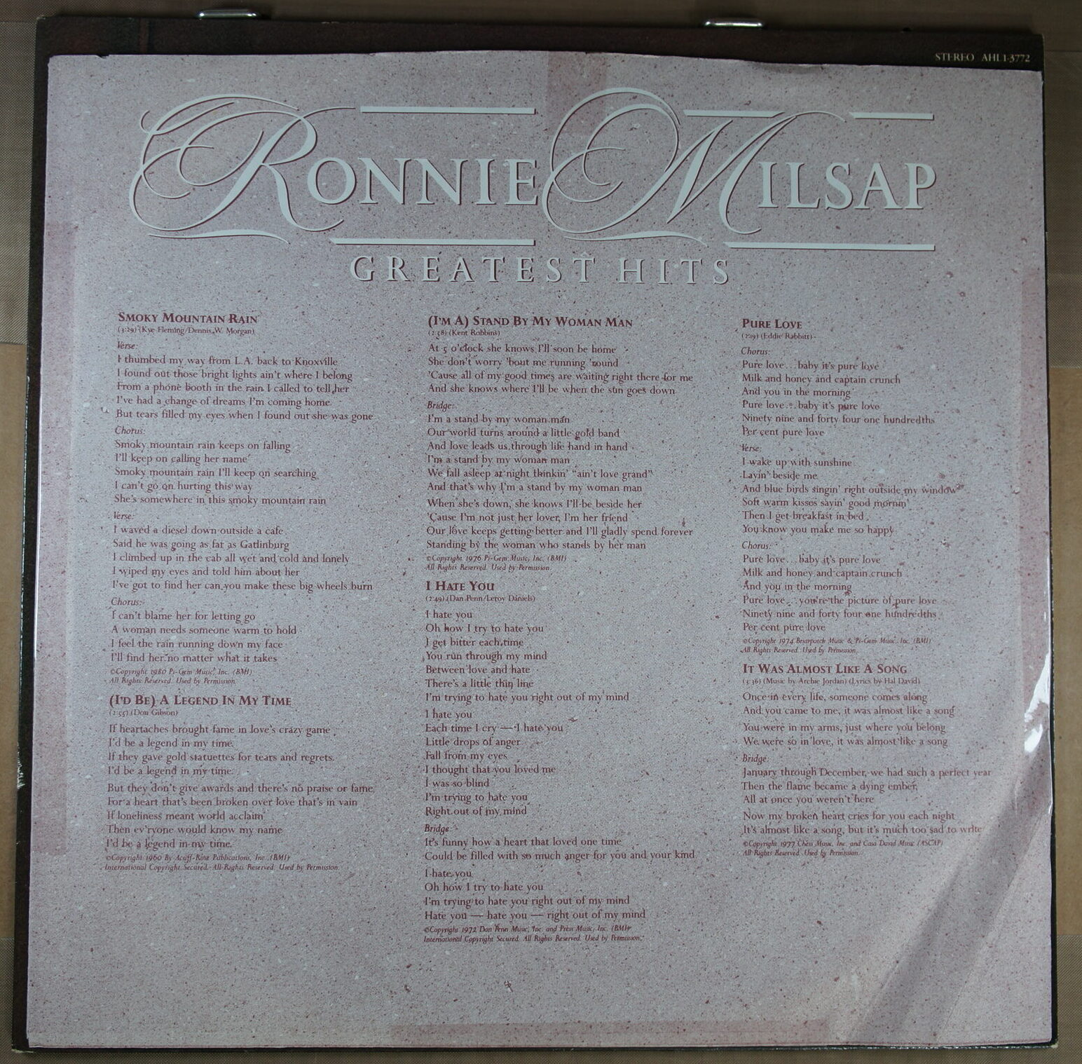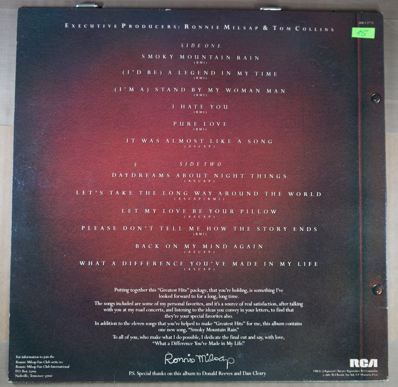 – płyta: była wielokrotnie odtwarzana, ale nie odznacza się słyszalnym spadkiem jakości dźwięku, pomimo śladów na powierzchni oraz nieznacznych zarysowań; które mogą być słyszalne drobne trzaski czy pyknięcia.