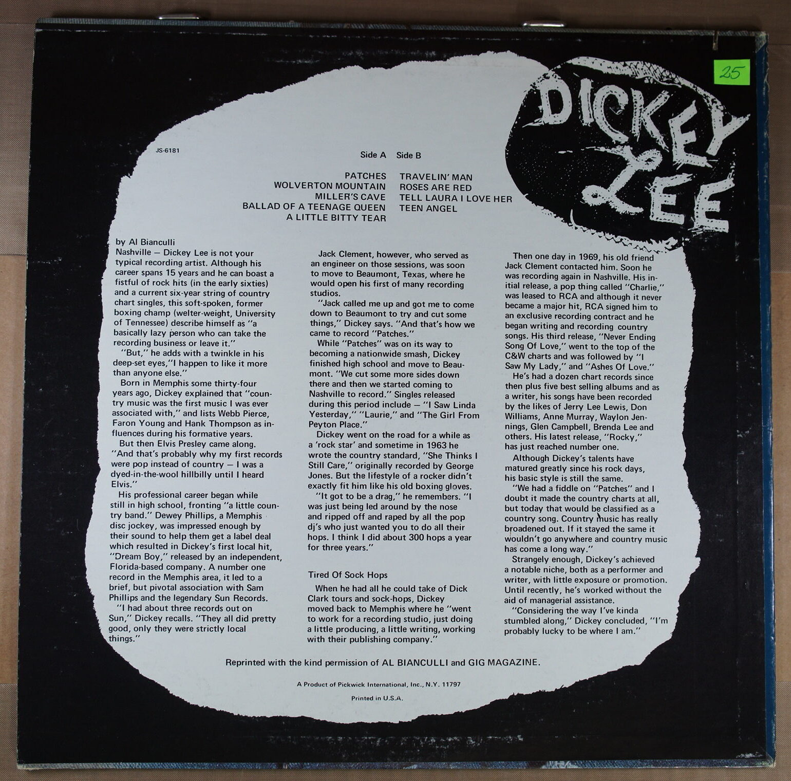 – płyta: była wielokrotnie odtwarzana, ale nie odznacza się słyszalnym spadkiem jakości dźwięku, pomimo śladów na powierzchni oraz nieznacznych zarysowań; które mogą być słyszalne drobne trzaski czy pyknięcia.