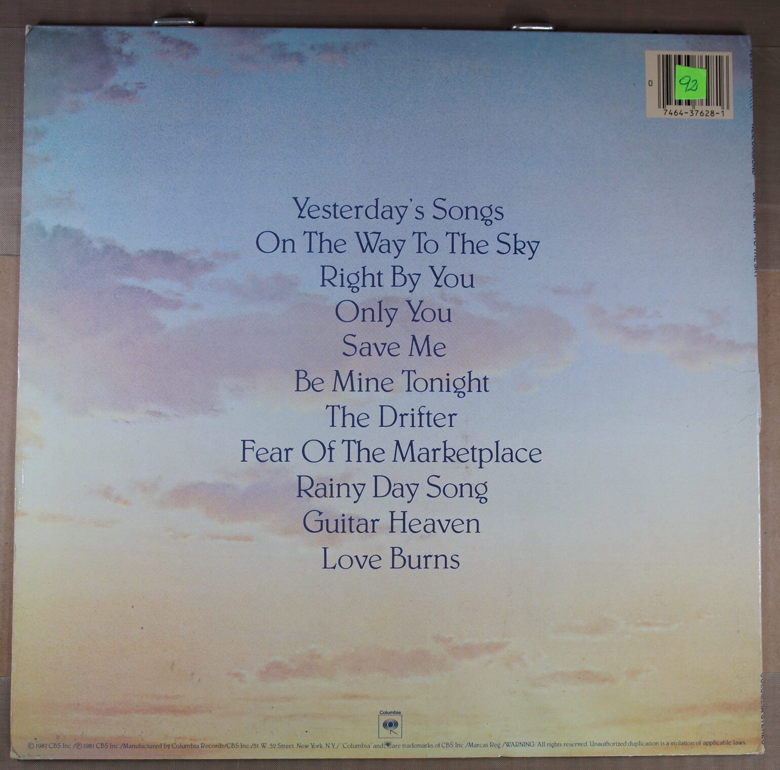 – płyta: była wielokrotnie odtwarzana, ale nie odznacza się słyszalnym spadkiem jakości dźwięku, pomimo śladów na powierzchni oraz nieznacznych zarysowań; które mogą być słyszalne drobne trzaski czy pyknięcia.