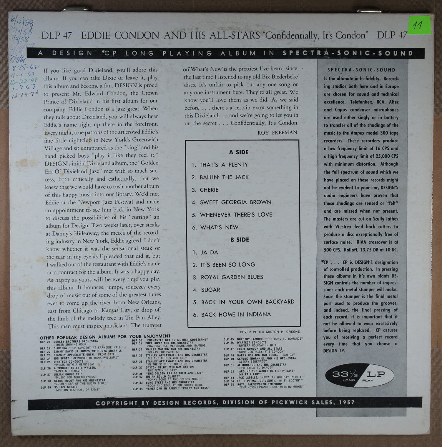 – płyta: była wielokrotnie odtwarzana, ale nie odznacza się słyszalnym spadkiem jakości dźwięku, pomimo śladów na powierzchni oraz nieznacznych zarysowań; które mogą być słyszalne drobne trzaski czy pyknięcia.