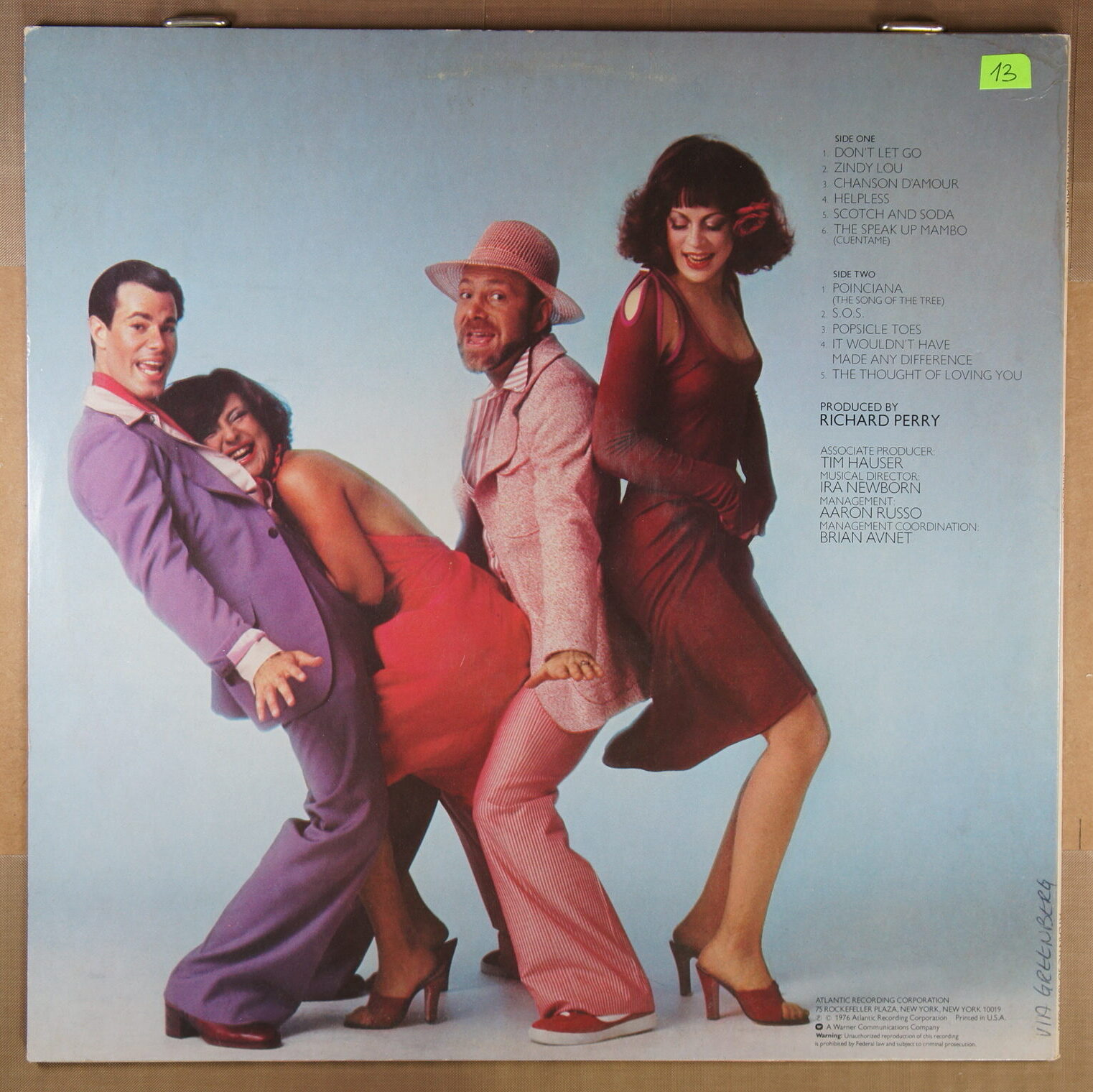 – płyta: była wielokrotnie odtwarzana, ale nie odznacza się słyszalnym spadkiem jakości dźwięku, pomimo śladów na powierzchni oraz nieznacznych zarysowań; które mogą być słyszalne drobne trzaski czy pyknięcia.
