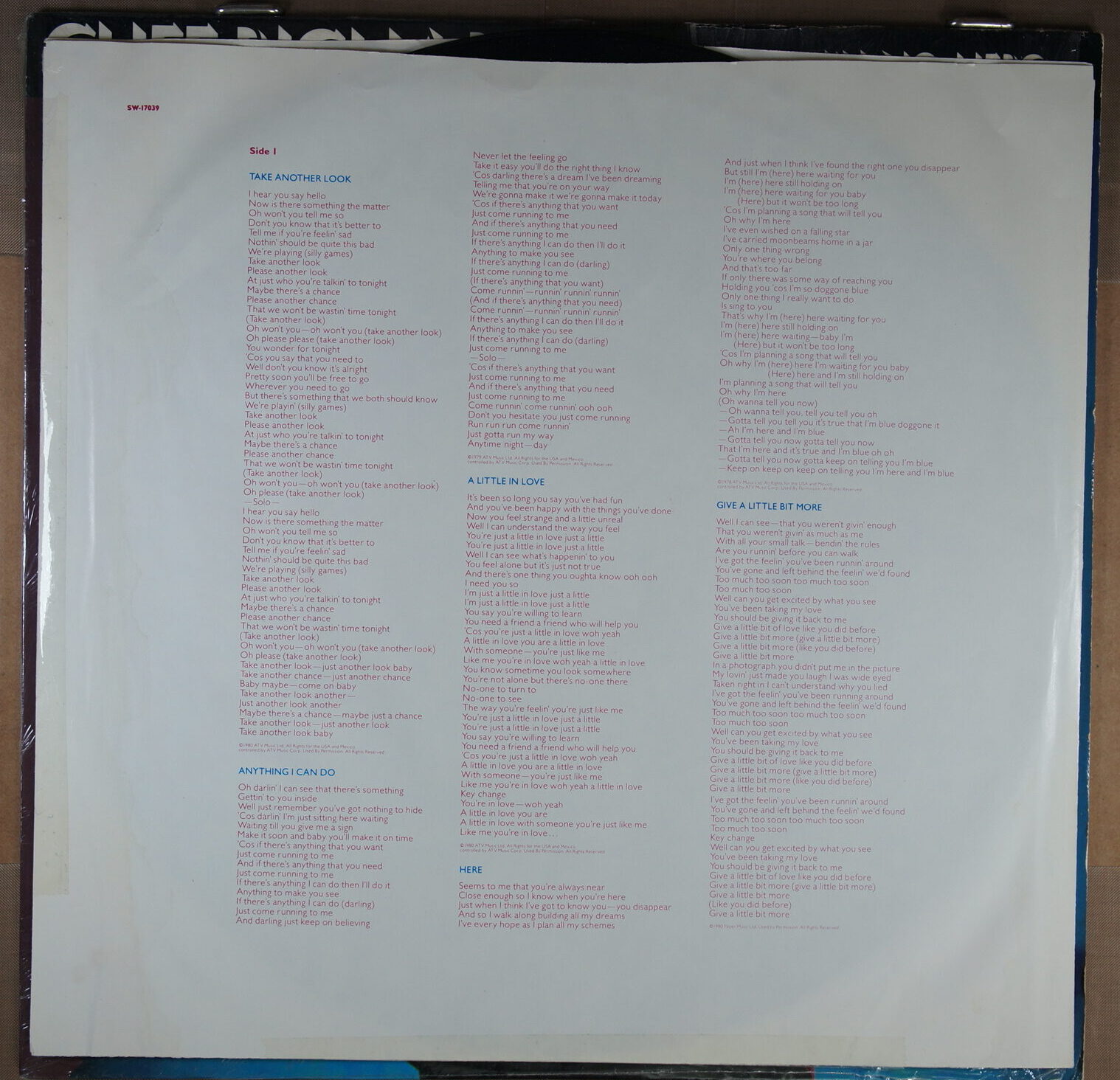 – płyta: była wielokrotnie odtwarzana, ale nie odznacza się słyszalnym spadkiem jakości dźwięku, pomimo śladów na powierzchni oraz nieznacznych zarysowań; które mogą być słyszalne drobne trzaski czy pyknięcia.