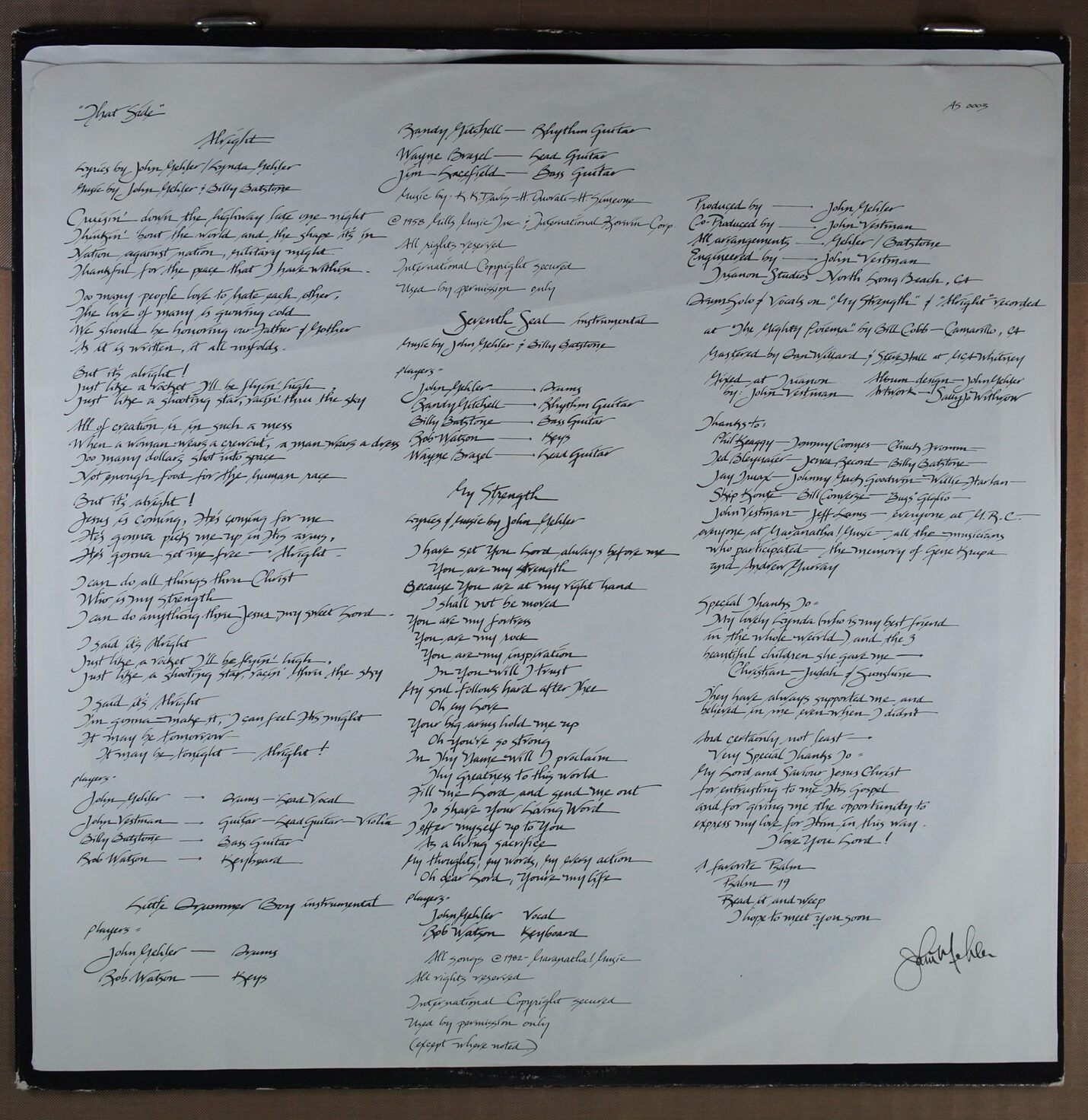 – płyta: była wielokrotnie odtwarzana, ale nie odznacza się słyszalnym spadkiem jakości dźwięku, pomimo śladów na powierzchni oraz nieznacznych zarysowań; które mogą być słyszalne drobne trzaski czy pyknięcia.