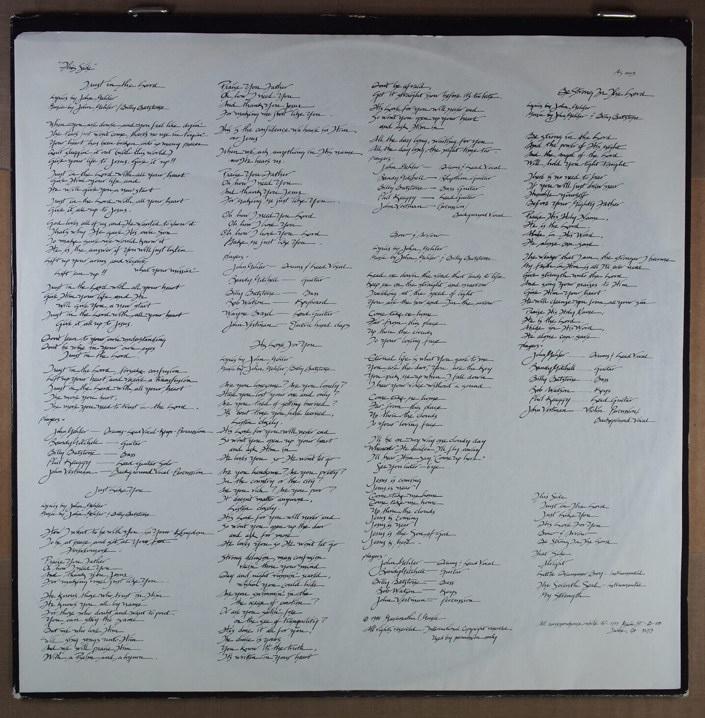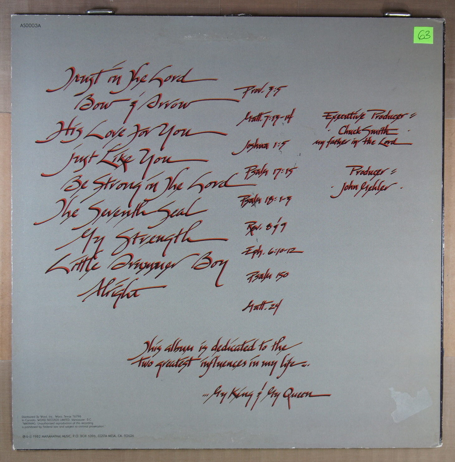 – płyta: nie nadaje się do odtwarzania, egzemplarz kolekcjonerski, wartość jedynie sentymentalna.